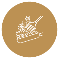 We deliver and set up our food and equipment at the event location, ensuring that everything is ready to go before guests arrive.